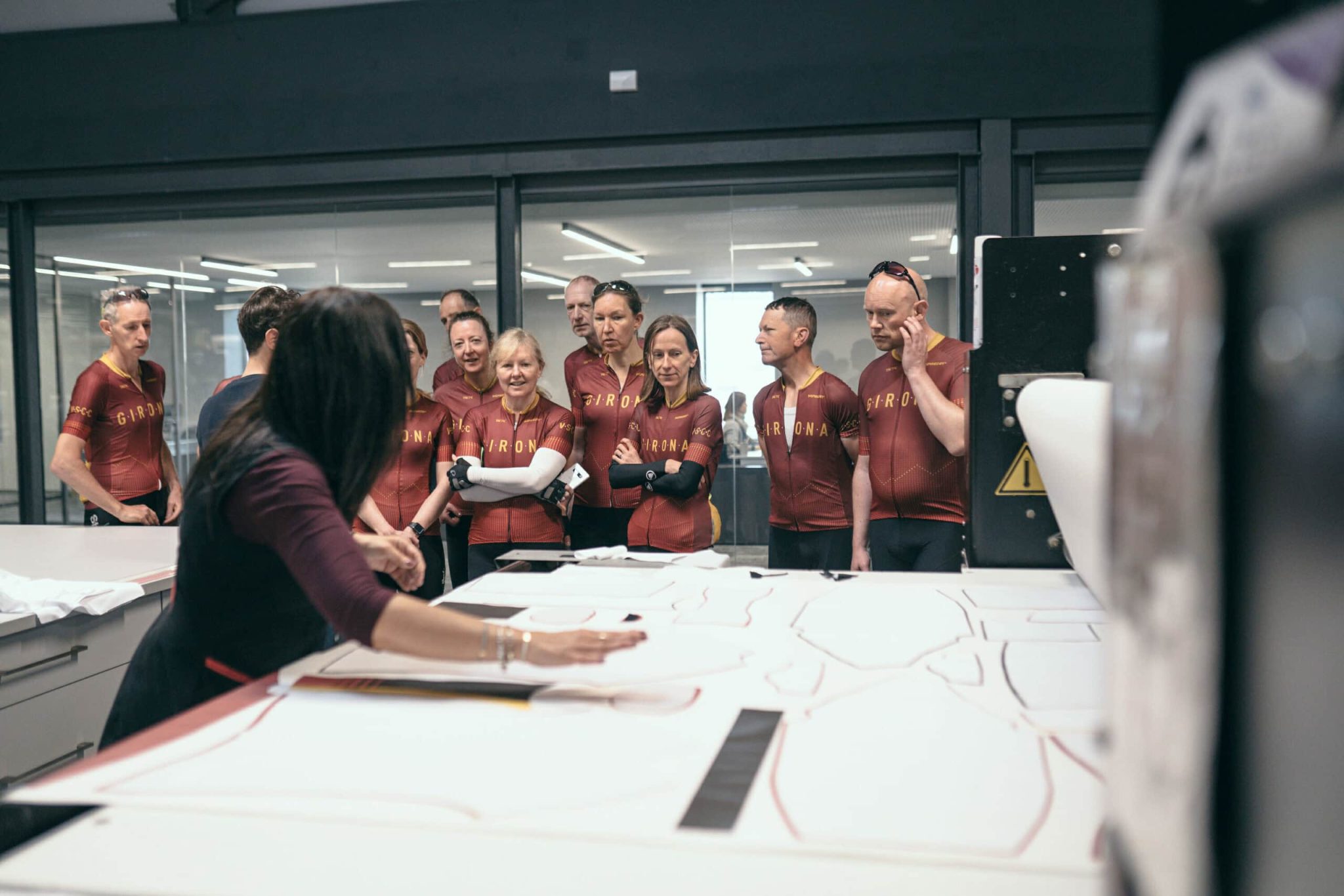 When I arrived in the morning the place was already buzzing with life and energy with production in full swing (they can manufacture 700 jerseys a day at maximum capacity). I was met by Francesc and Sergei, the aforementioned marketing team, and offered a coffee from The Broom Wagon, which is now stationed there, before we got on our way. We moved through the factory processes from customer services to the final quality checks and everything in between. It might not seem like a tour of a sports clothing factory would be the most thrilling day out but it was truly interesting to see the process that goes into making the kit and how each part of the production knits together. For example, I was impressed to discover that each garment (up to 300 a day) undergoes a manual quality check before leaving the factory and that the temperature to transfer the design from the paper to the material is 250°.